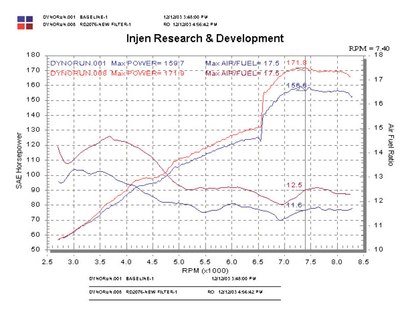 Add some easy horsepower to your Ride with this RD Series Performance cold air intake (CAI) from Injen Technology! The engineers at Injen have spent considerable amounts of time designing, testing, and perfecting this CAI to produce some serious bolt-on power while also providing amazing engine bay aesthetics. In addition to the impressive power increase, the Injen team has ensured that safe Air fuel (A/F) ratios are maintained throughout the powerband. , , The soul of this intake is found within our mandrel-bent 6061-T6 aluminum air intake tube that provides a smooth uninterrupted path for highly efficient airflow. This tube reaches into the depths of the engine bay to collect the coolest and densest air available. Additionally, this RD intake also includes a fully serviceable Injen SuperNano-Web dry air filter, which provides increased filter surface area allowing for greater airflow and unbeatable filtration. If that's not enough, the Injen RD performance intake provides power you can hear and feel! This intake provides an aggressive and throaty tone that is unmatched in the aftermarket. Want to add that personalized touch to your intake? Injen also offers this intake system in a polished or a powder-coated Black finish. To top it all off, this RD CAI kit includes the unbeatable Injen Technology limited Lifetime Warranty!,